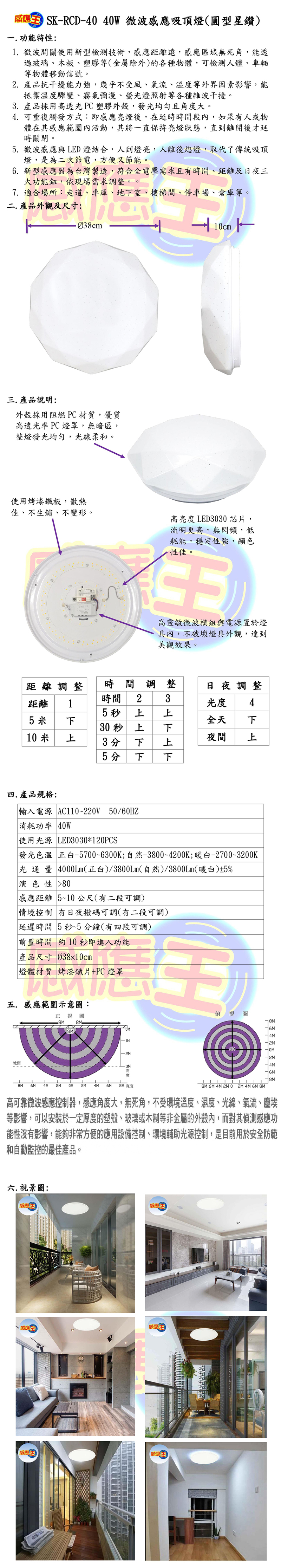 40W微波感應吸頂燈(圓型星鑽)