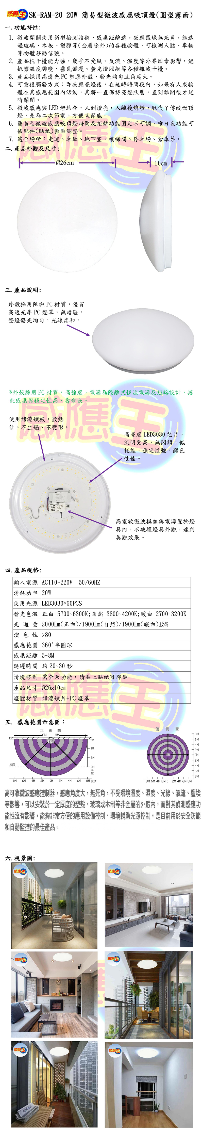 20W簡易型微波感應吸頂燈(圓型霧面)