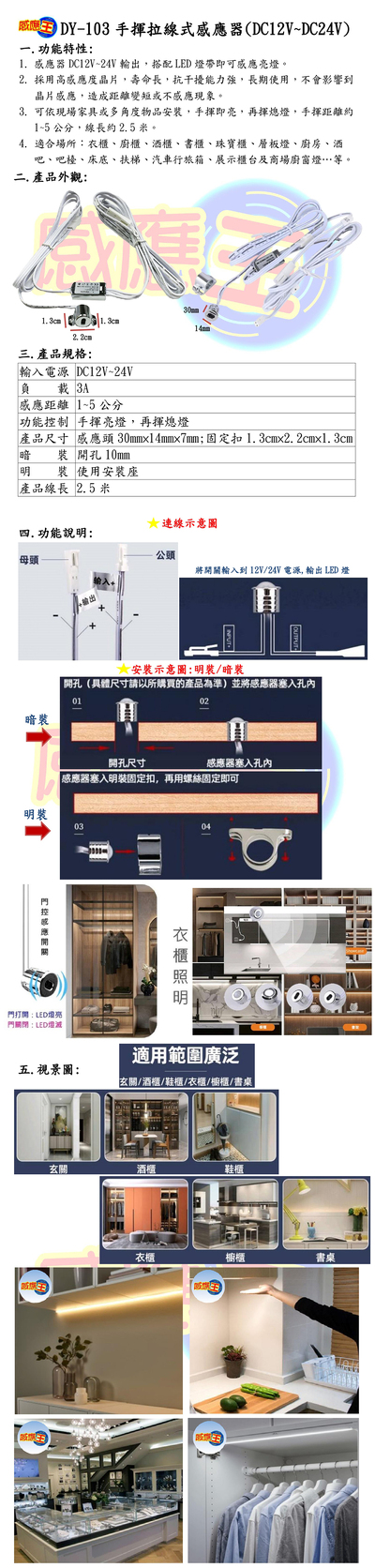 手揮拉線式感應器(DC12V~24V)