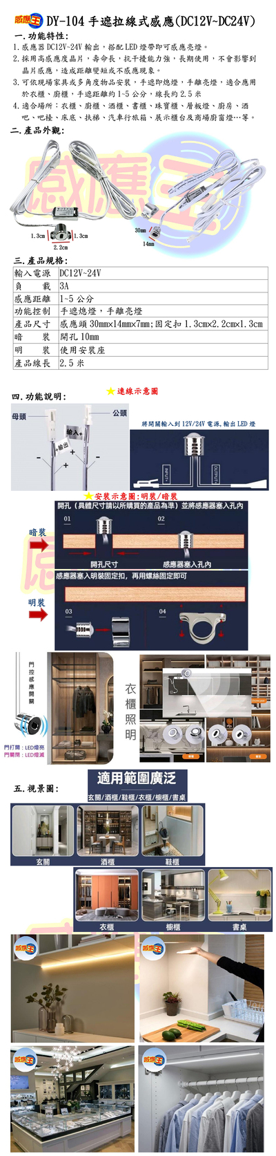 手遮拉線式感應器(DC12V~24V)