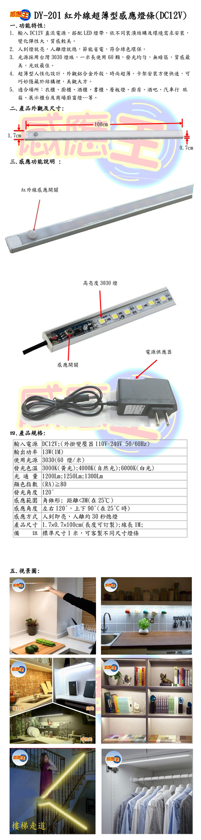 紅外線超薄型感應燈條(DV12V)