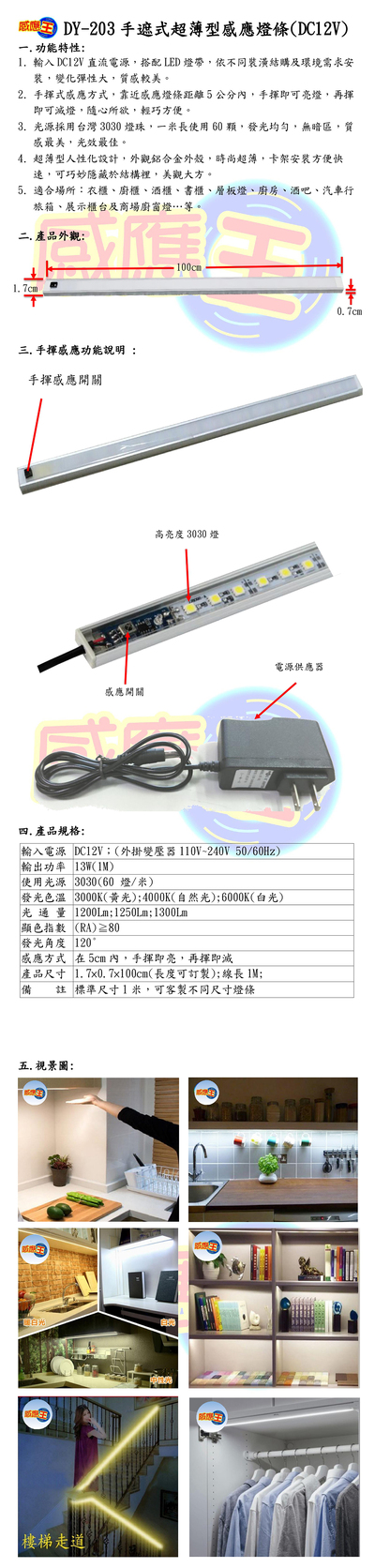手遮式超薄型感應燈條(DV12V)