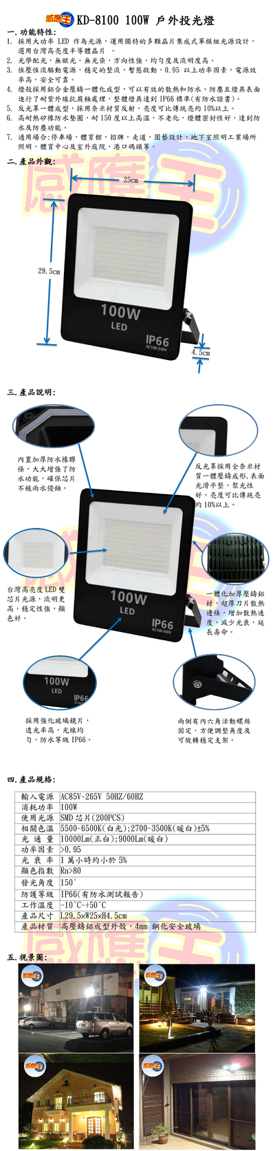 100W戶外投光燈