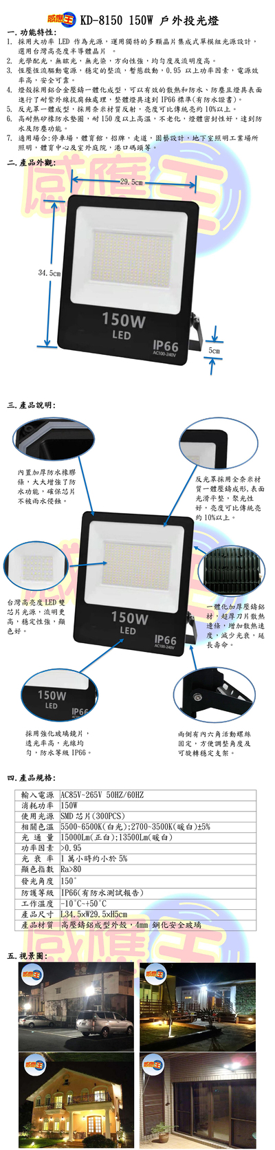 150W戶外投光燈
