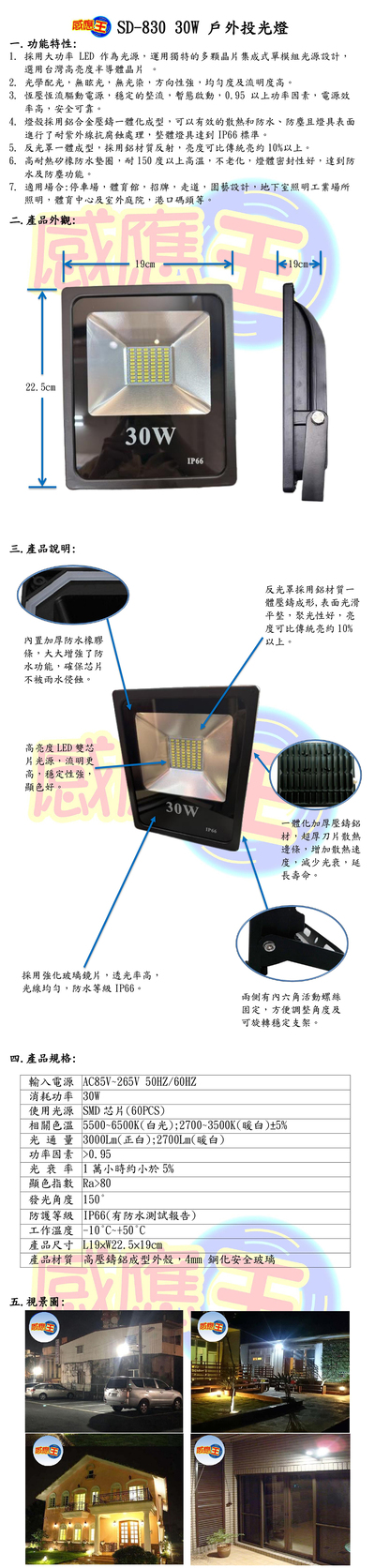 30W戶外投光燈