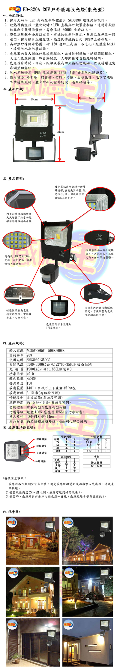 20W紅外線感應投光燈(散光型)