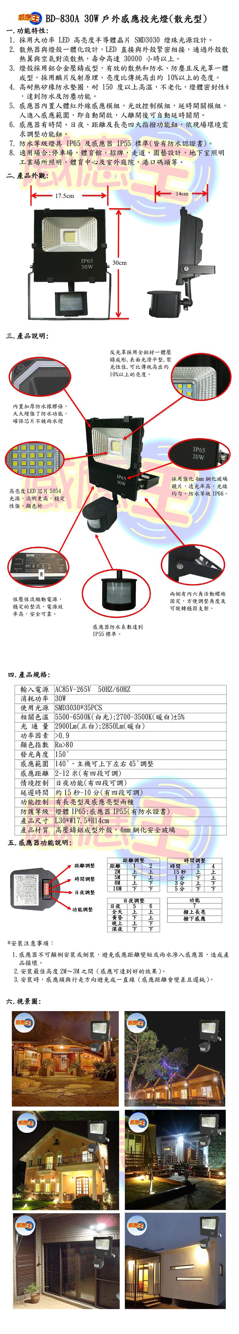 30W紅外線感應投光燈(散光型)