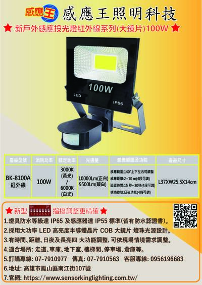 新戶外紅外線感應投光燈(100W)