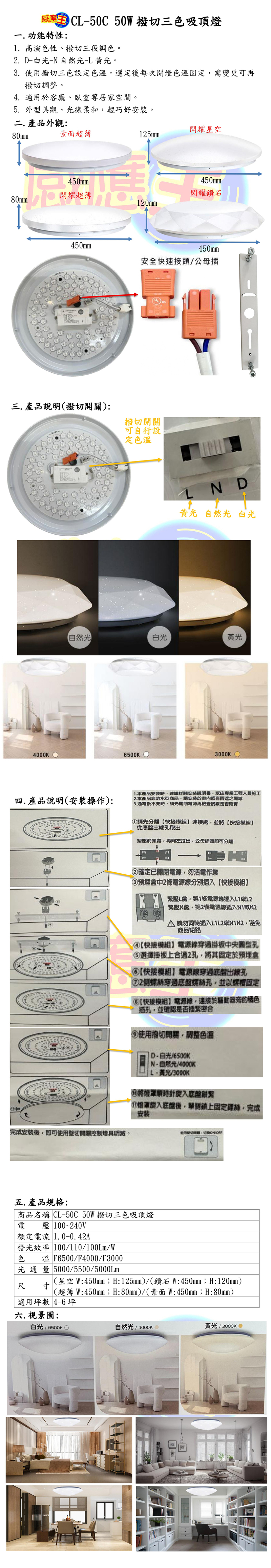 壁切三色吸頂燈