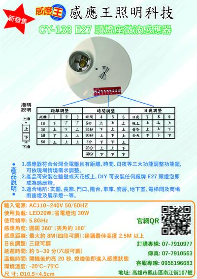 CY-133 E27燈頭座微波感應器