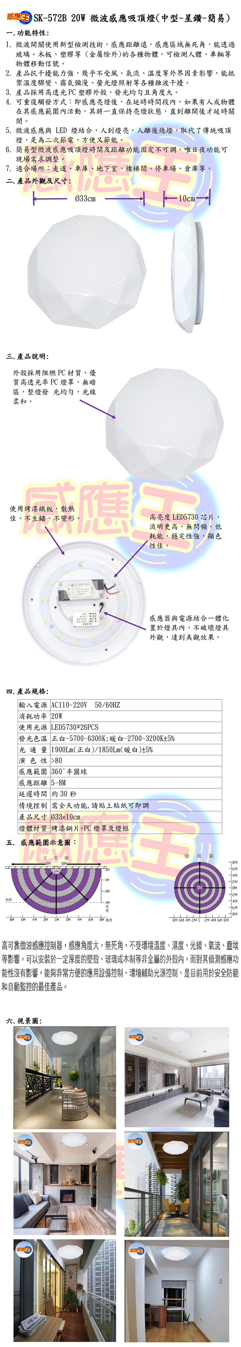 20W微波感應吸頂燈(中型-星鑽-簡易型)