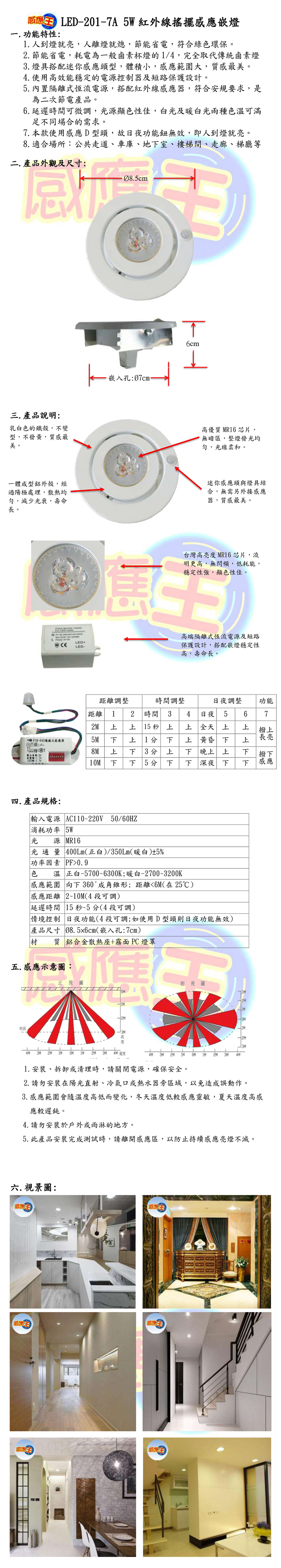 5W紅外線搖擺感應嵌燈