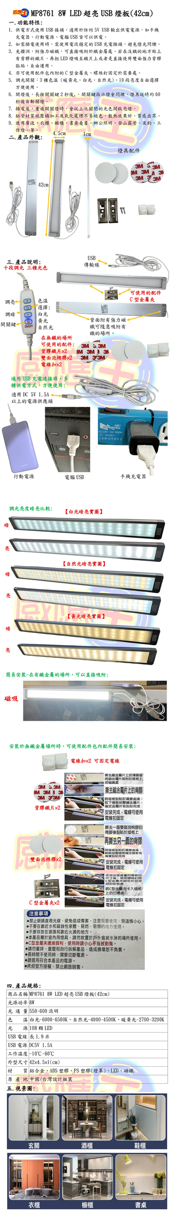 LED超亮USB燈板(無感應-8W-42cm)