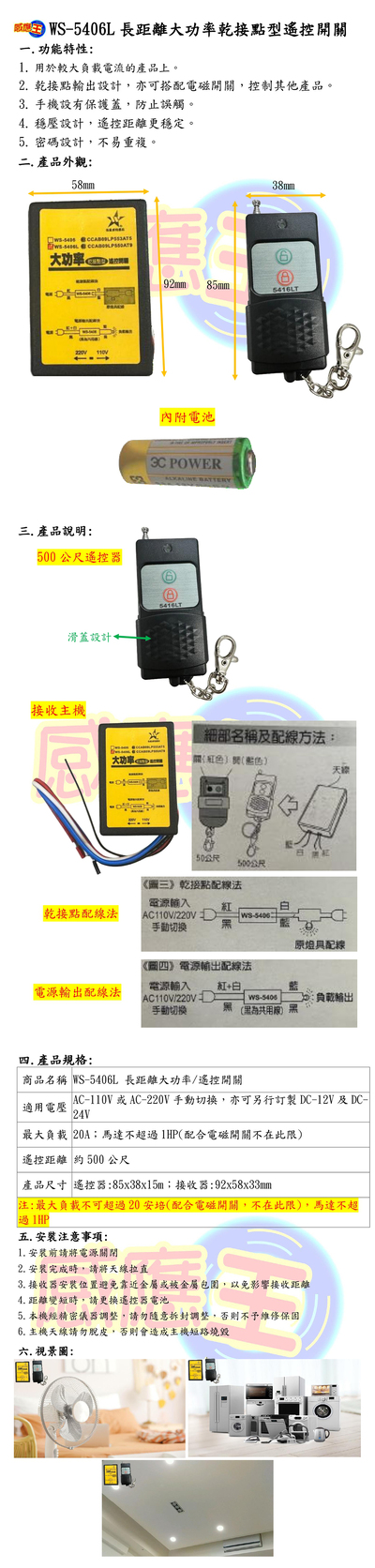 長距離大功率乾接點型遙控開關