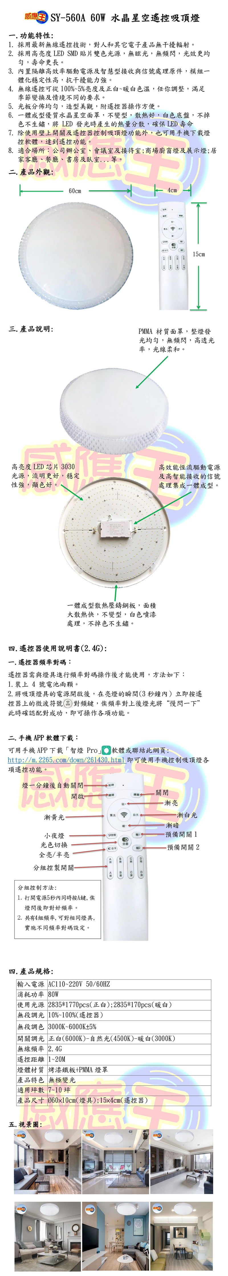 80W水晶星空遙控吸頂燈