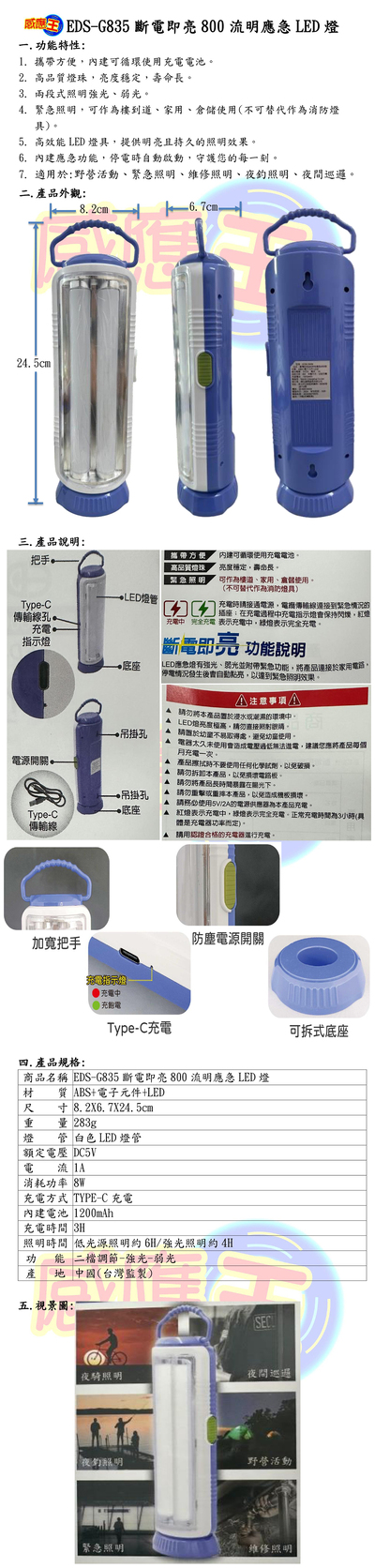 斷電即亮800流明應急LED燈
